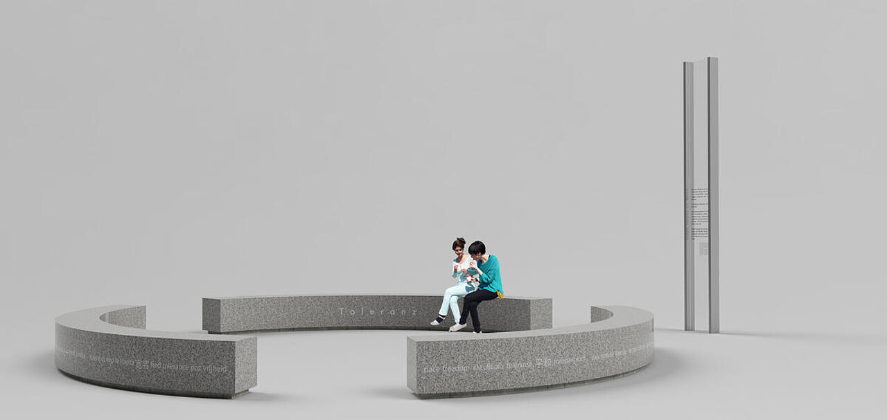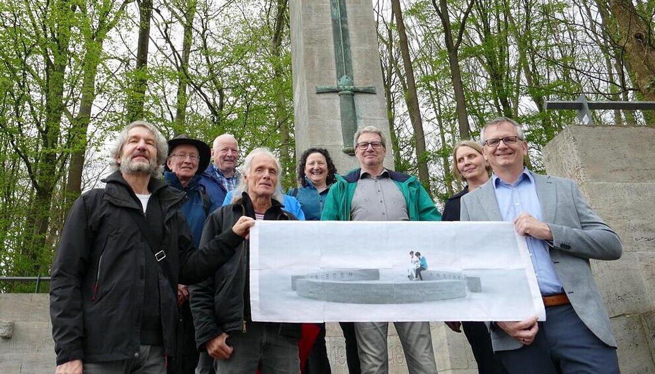 Nach einem Wettbewerb für Schüler*innen und Künstler*innen entschied sich die Ratsversammlung im Februar 2022 einstimmig dafür, den Entwurf – siehe Bild unten – zu realisieren. Entstehen wird ein dreifach durchbrochener steinerner Sitzkreis, in dessen Innerem die Worte „Frieden“, „Freiheit“ und „Toleranz“ eingraviert sind. Die Christuskirchengemeinde unterstützt das Mahnmal-Projekt.